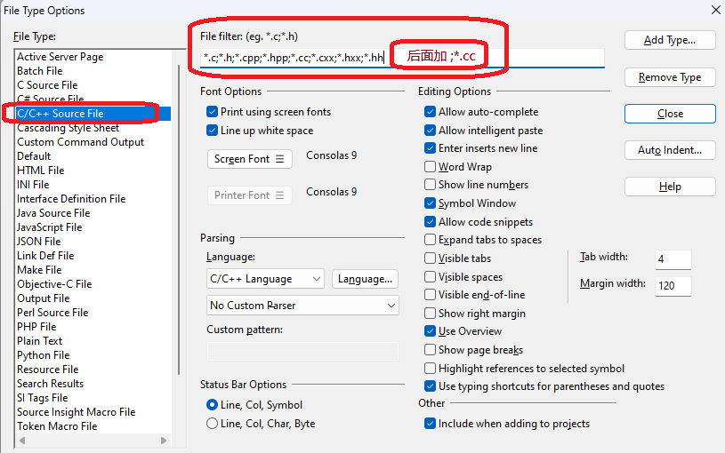 如果文件后缀名不是常规的,比如Cpp的.cpp扩展名写作了.cc,那么就需要人为配置。