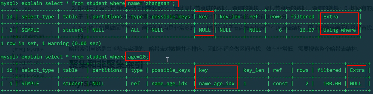1 | EXPLAIN SELECT * FROM student WHERE name='zhangsan'; |
