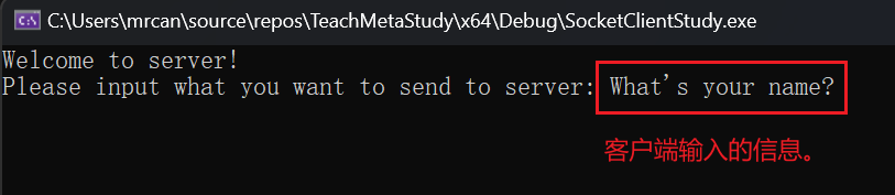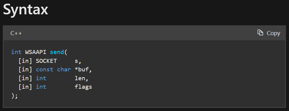 1 2 3 4 5 6 7 8 9 10 11 12 int main () { std::wcout << L"Please input what you want to send to server: " ; std::wcin >> buf; int bytes_sent = ::send ( sock, reinterpret_cast <const char *>(buf), sizeof (wchar_t ) * wcslen (buf), 0 ); }