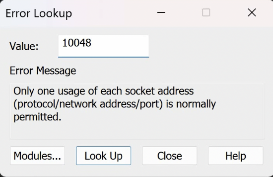 我们可以通过WSAGetLastError()获得错误码+Error Lookup查询详细的connect失败描述:
