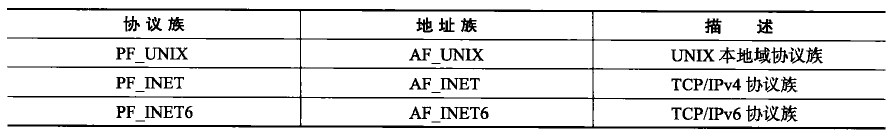 协议族:Protocol Family,简写PF。也称domain。