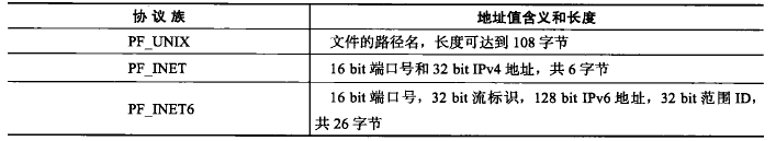 sa_data成员用于存放socket地址值。但是,不同的协议族的地址值具有不同的含义和长度,如下图所示。