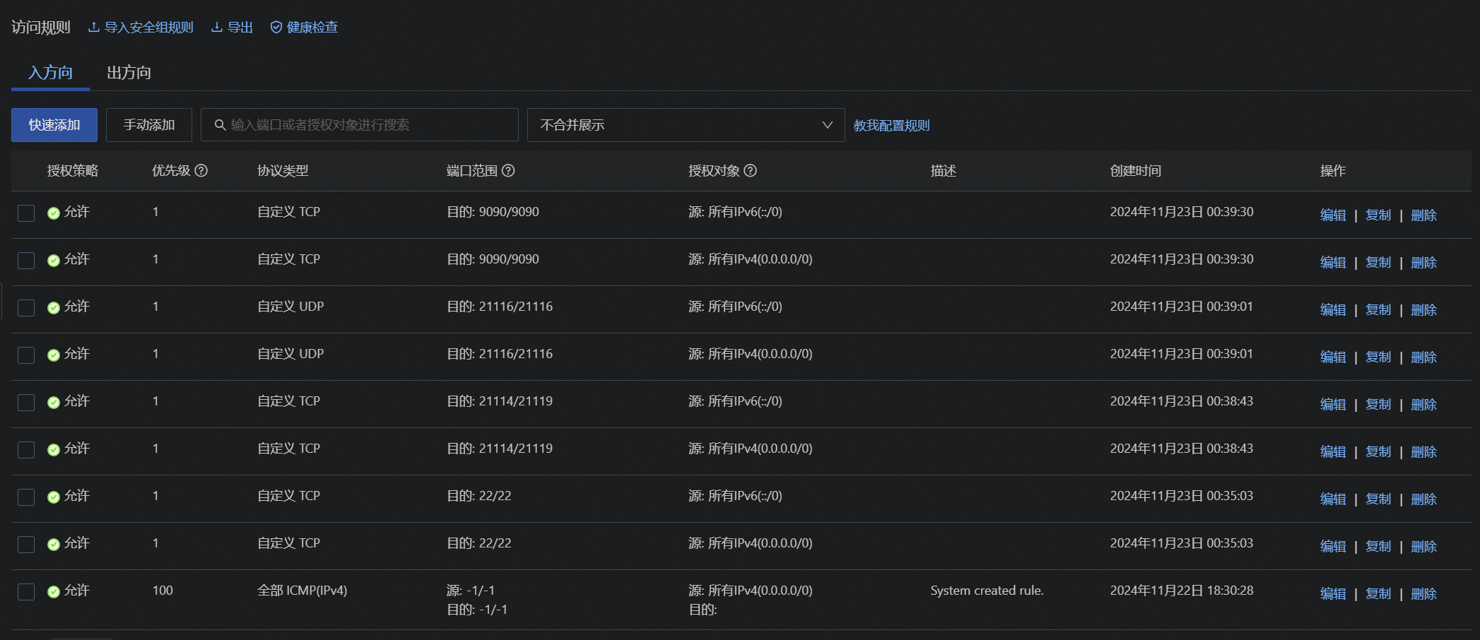 不要贸然开放所有端口,经过测试,服务器会莫名遭到DDoS攻击,导致CPU、带宽高占用,服务器连接数峰值达到10K,对于2C2G3M的服务器来说,肯定禁不住。导致ssh经常断联、无响应;远程桌面也很卡顿。