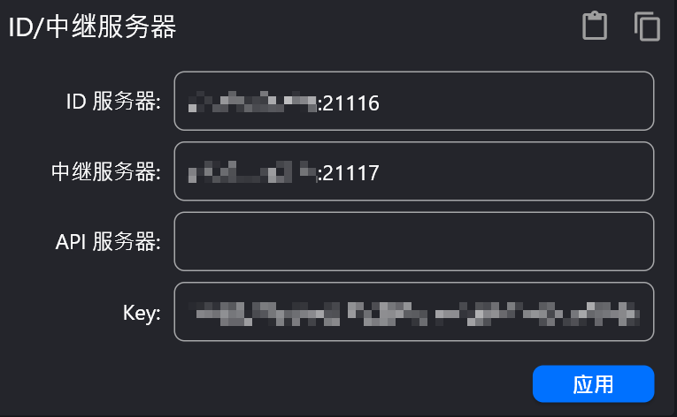 ID服务器IP+21116端口,中继服务器IP+21117端口。