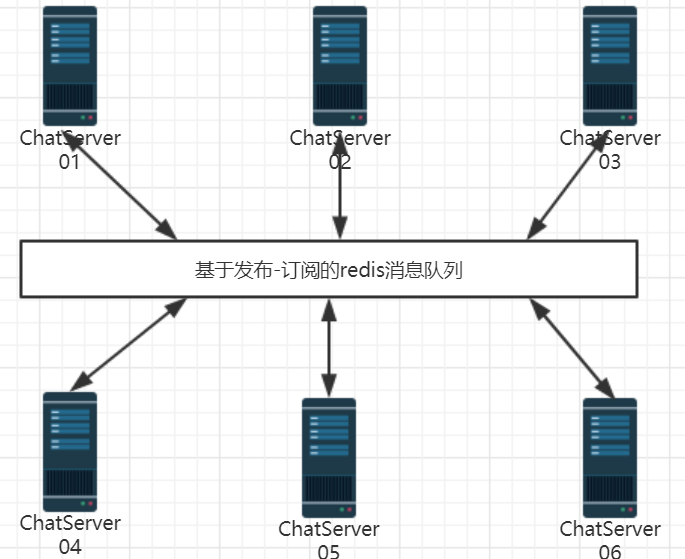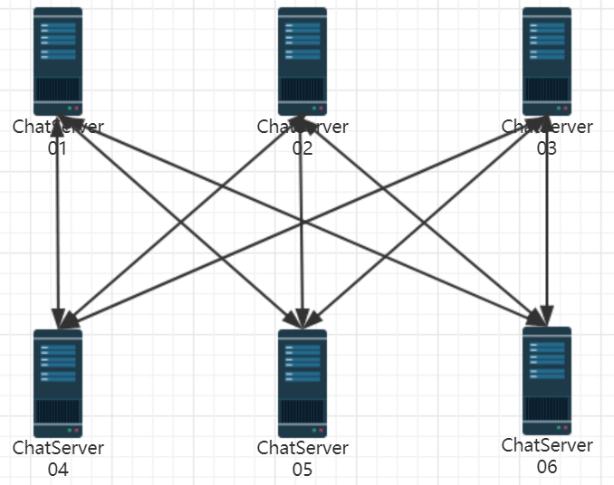 最直观的想法 是让各个ChatServer服务器互相之间直接建立TCP连接进行通信,相当于在服务器网络之间进行广播。