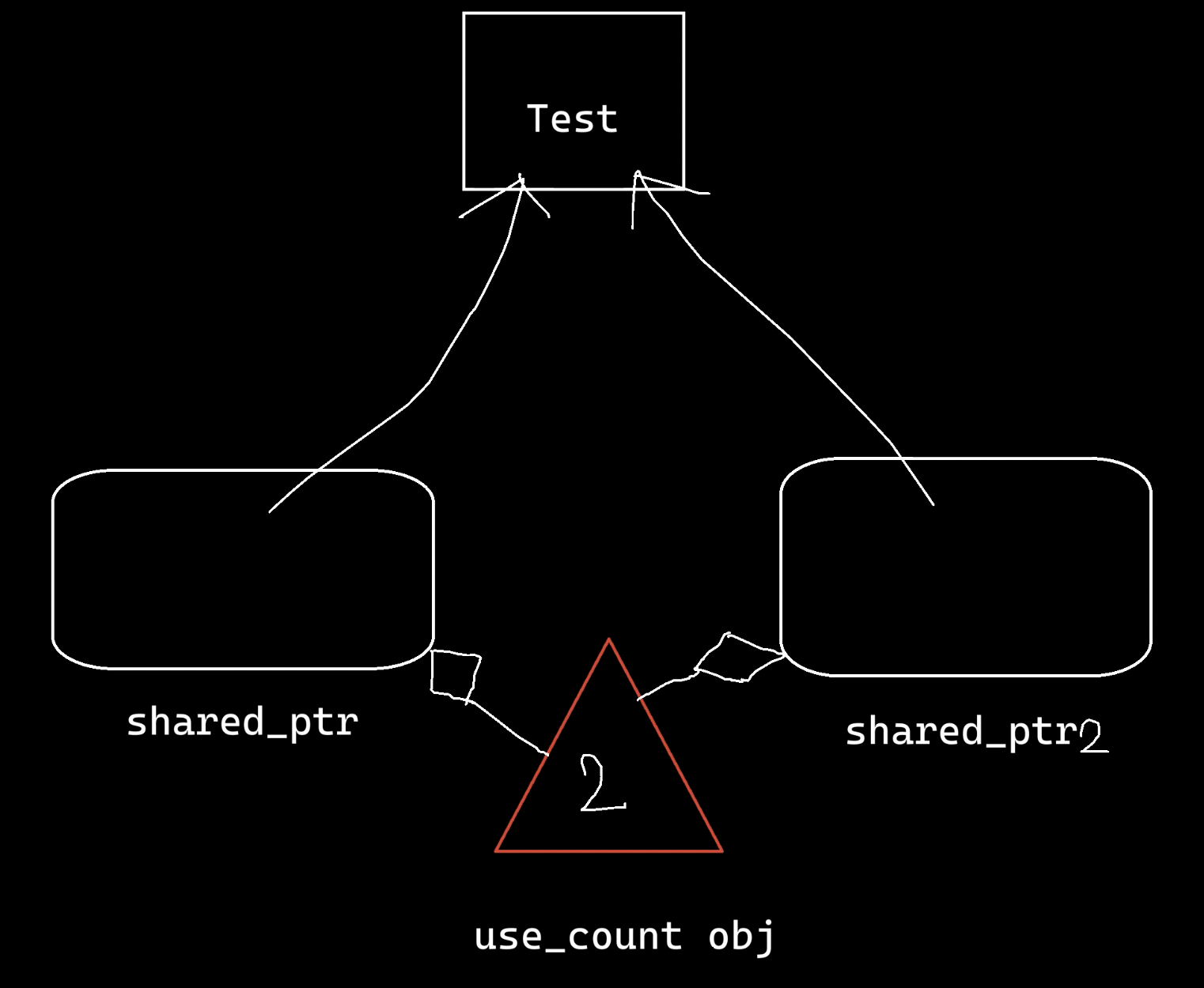 - 指定的智能指针确实是test之前指向的对象
