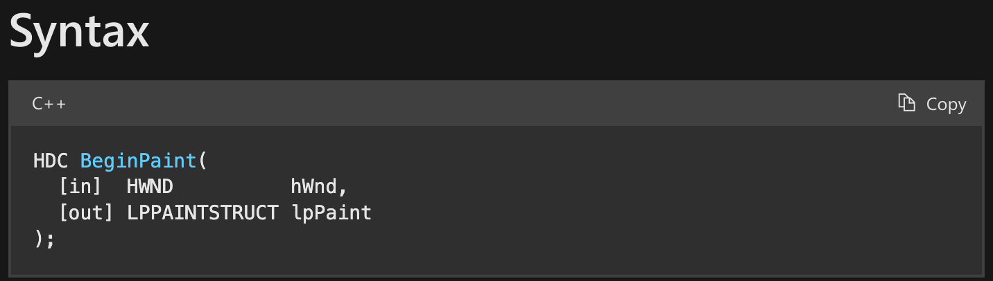 1 | LRESULT CALLBACK window_procedure(HWND wnd, UINT message, WPARAM wparam, LPARAM lparam) |